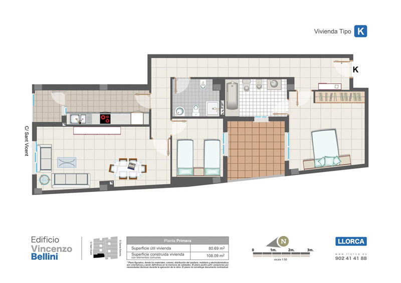 | Vivienda TIPO K , planta 1ª | |||||||||